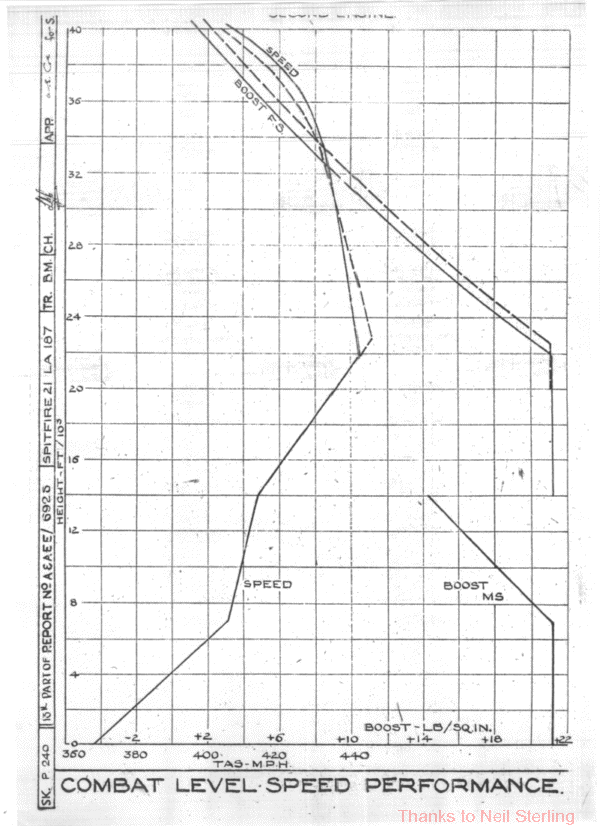 | ...........Climb and level speed performance trials have been completed on this aircraft, the first production Spitfire 21. The salient results were as follows :- |